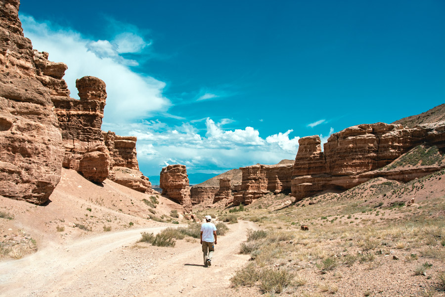 After breakfast depart for a full-day excursion to Charyn Canyon (220km, 3h). As you travel through the open steppe and mountain landscapes, your guide will share stories and insights about the region and its natural history. Upon arrival, descend into the canyon to reach the banks of the Charyn River. Take time to rest and enjoy the dramatic scenery while learning about the unique ecosystem surrounding you. Continue walking through the spectacular Valley of Castles, where towering rock formations rise up to 200 meters and stretch for more than two kilometers.