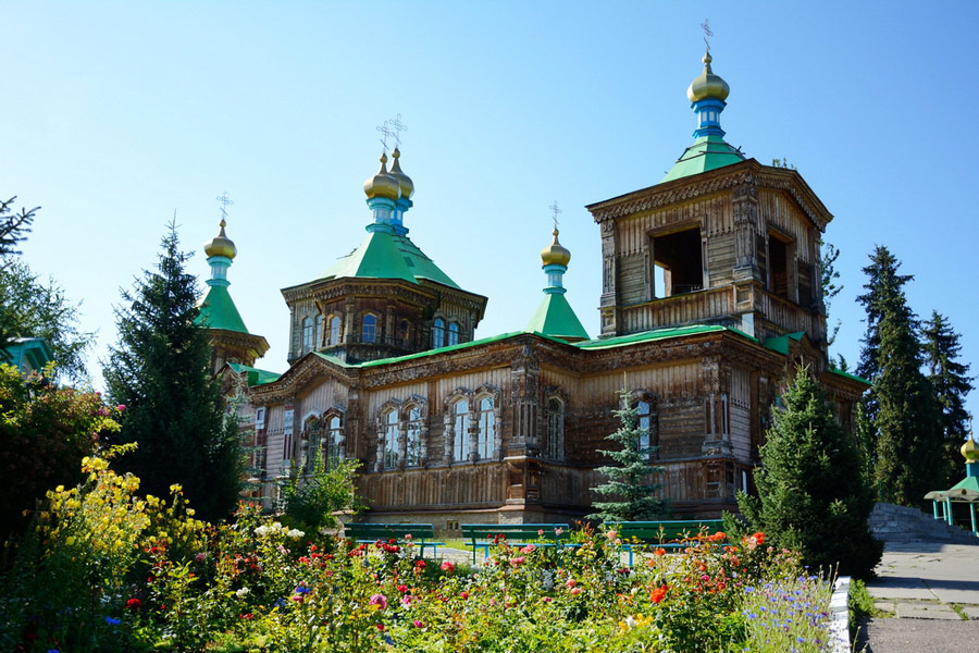 Begin the day with a guided city tour of Karakol, a charming town known for its blend of Russian and Central Asian heritage. Visit the Holy Trinity Russian Orthodox Cathedral, an elegant wooden church built in 1895 and still in use today. Continue to the Dungan Mosque, constructed in 1910 without a single nail – its colorful design reflects strong Buddhist and Chinese architectural influences.