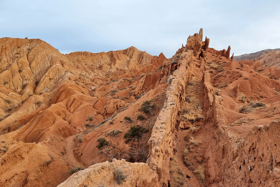 Continue onward to Skazka Canyon (Fairy Tale Canyon, 90km), where wind and time have sculpted vivid red sandstone into imaginative shapes resembling castles and animals. After exploring the canyon, drive to a yurt camp on the shore of Issyk-Kul Lake. Overnight in a yurt camp at Issyk-Kul Lake.