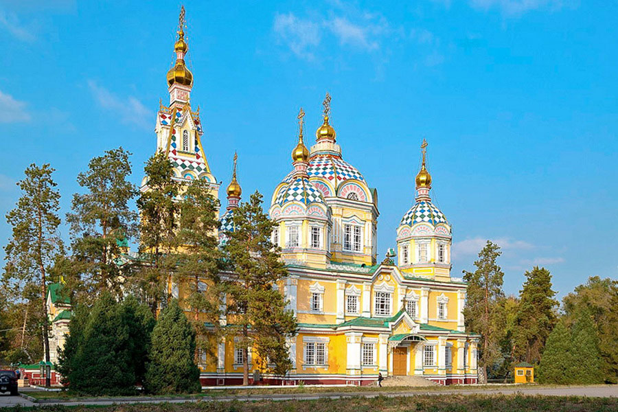 Breakfast at hotel on the eighth day of your Five Stans of the Silk Road Group Tour. Explore the vibrant city of Almaty on a guided city tour. Visit Independence Square, the beautiful Zenkov Cathedral, Panfilov Park, and the striking WWII Memorial. Stop by the bustling Green Bazaar, where you can browse local spices, fresh produce, meats, and traditional souvenirs. Continue with a short drive to Kok-Tobe Hill, offering panoramic views of Almaty and the surrounding mountains.