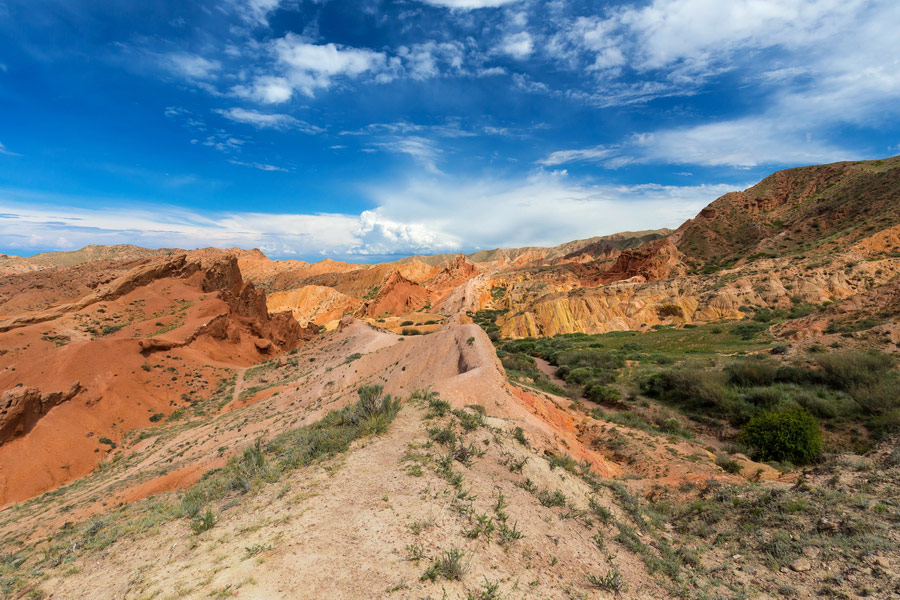 After breakfast, continue the journey through Kyrgyzstan with a short drive of 20 km to Skazka Canyon, also known as Fairy Tale Canyon. Here, wind and time have sculpted vivid red sandstone into imaginative shapes resembling castles, animals, and other fantastical forms.