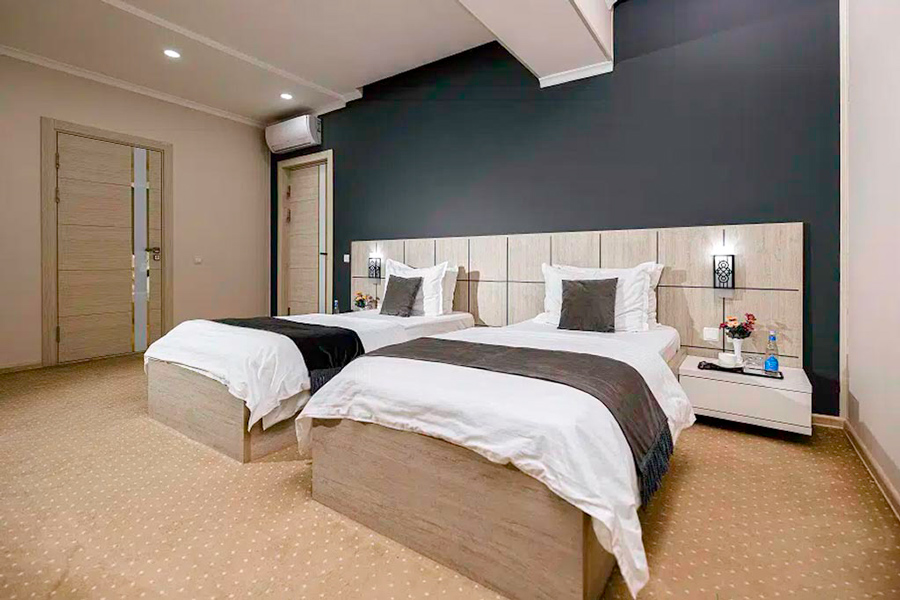 В гостинице 34 номера – стандартные и полулюкс, которые отличаются типами кроватей и дополнительными удобствами. Во всех номерах есть всё необходимое для хорошего отдыха и досуга. Ванные комнаты светлые, чистые, оборудованы душевыми кабинками. В гостинице есть ресторан для завтраков со шведским столом и предлагаются многие стандартные услуги.