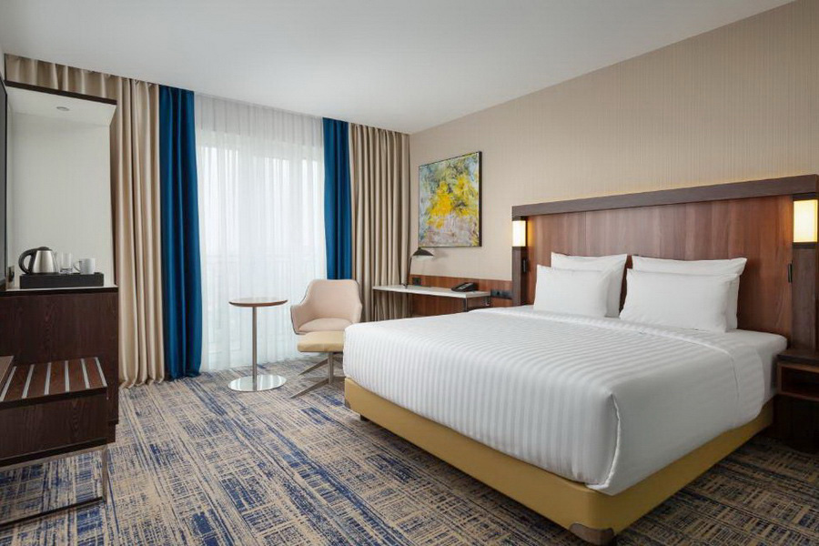 Номера гостиницы Courtyard by Marriott оформлены в современном лаконичном стиле и при этом оснащены всем для превосходного отдыха. Комнаты довольно просторные и светлые. Ванные комнаты оборудованы душевыми кабинками. В гостинице есть отличный ресторан для завтраков, кафе, крытый бассейн, сауна, тренажерный зал и различные помещения для деловых мероприятий. О качестве отдыха гостей позаботится гостеприимный и отзывчивый персонал отеля.