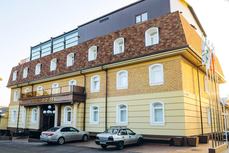 Прага – небольшой отель в 4 км на юго-запад от центра Ташкента. Он удобно расположился на тихой улочке, а всего в 200 метрах находится крупная улица, по которой можно добраться до любой точки города за 15-20 минут. Аэропорт находится в 4 км от отеля.