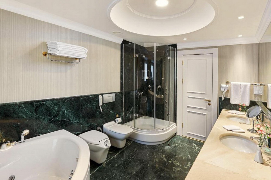 Все комнаты обставлены удобной мебелью, очень уютные и просторные, с роскошными мраморными ванными комнатами. Письменный стол, телефонная линия и доступ к высокоскоростному Интернету в номерах гостиницы создают идеальные условия для продуктивной деловой поездки. Рестораны "Туркуаз", "Густо Гарден Бар" (сезонный), расположенные в отеле, предлагают разнообразие международных кухонь. Отель славится своими ресторанами и коронным сервисом.