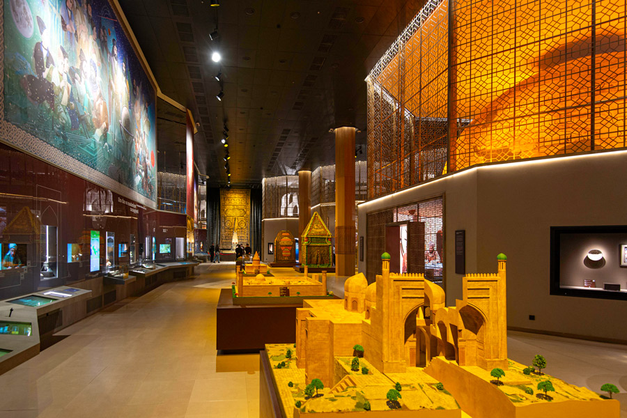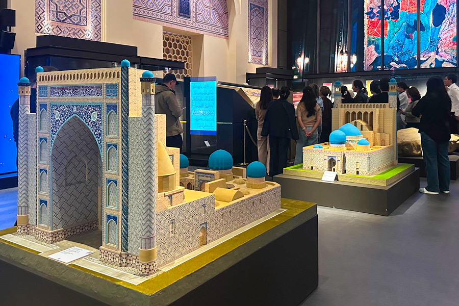 Экспозиция включает старинные монеты, рукописи, архитектурные макеты, предметы прикладного искусства и украшения. Дополняют её мультимедийные элементы – в том числе цифровые аватары исторических личностей Востока.