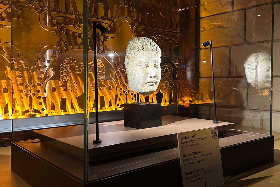 Ключевой элемент пространства – протяжённая «Стена цивилизаций» с барельефами и мультимедийными вставками. Она показывает, как территории Хорезма, Бактрии и Согда входили в крупные торговые и культурные сети древнего мира.