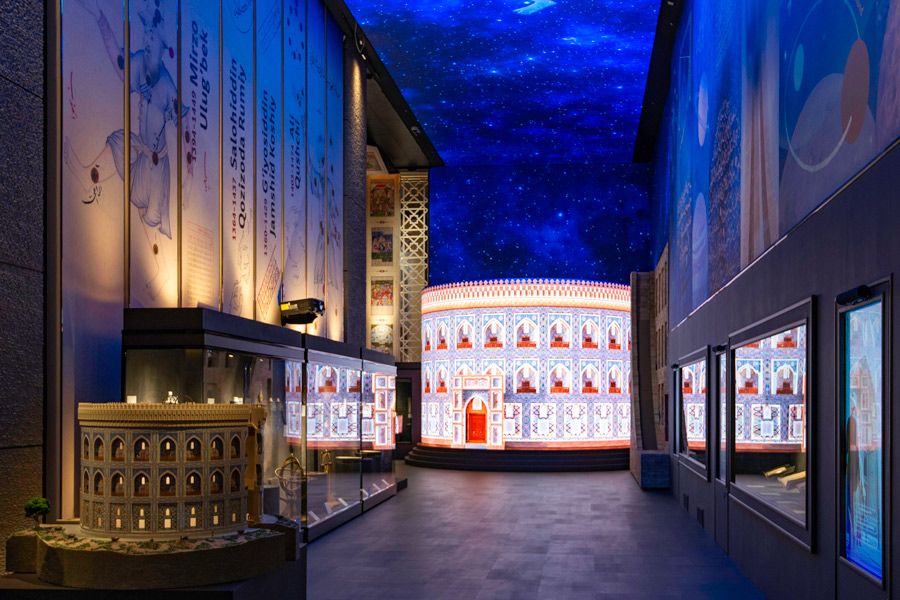 Здесь представлены макеты мечети Биби-Ханым, мавзолея Гур-Эмир, обсерватории Улугбека и других архитектурных памятников эпохи Тимуридов. В экспозиции также можно увидеть труды Алишера Навои и знаменитый звёздный каталог Улугбека. Мультимедийные панели рассказывают о развитии астрономии, архитектуры, поэзии и литературного языка того времени.