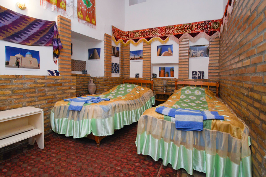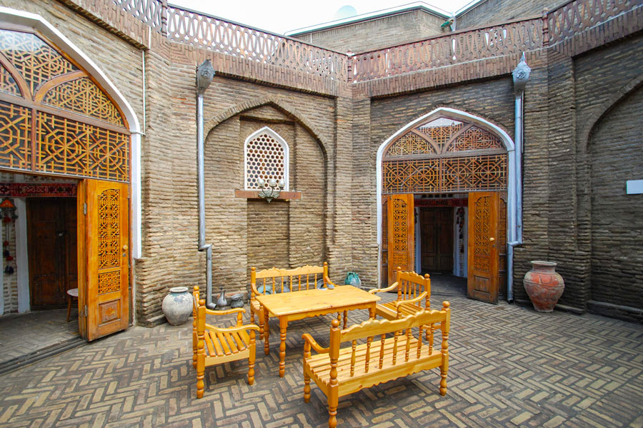 The hotel is on Nakshbandi Street within a 5 minute walk from Lyabi-Khaus. This building is a former karavan-saray, constructed in the 19th century, and has been adapted to become a hotel. This is the only hotel in Bukhara which is located in an ancient building.