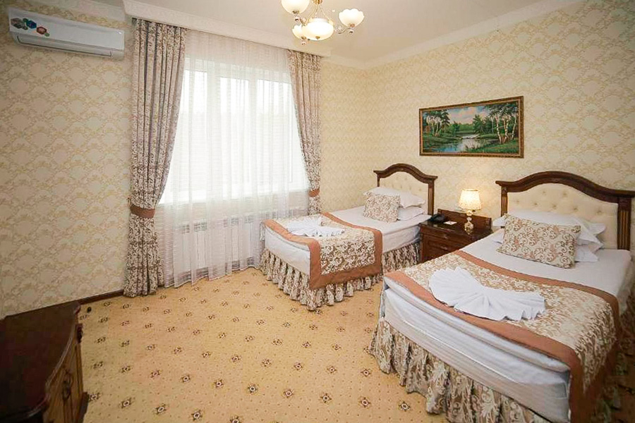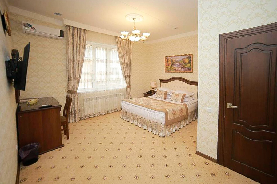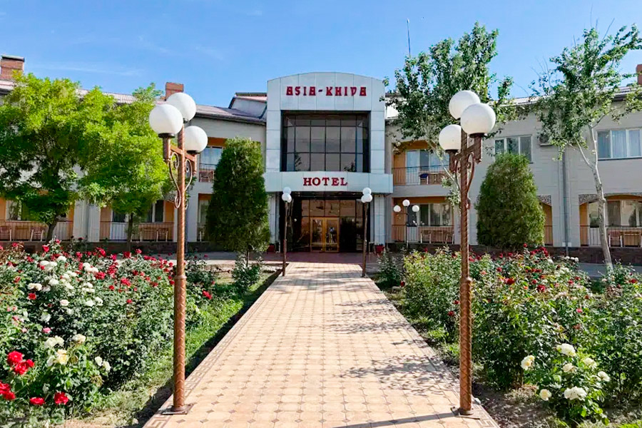 Hotel "Asia Khiva" is located just outside the Ichan Qala complex, and provides comfortable accommodation in western style. It consists of two buildings, one built in 2004, and the other in 2007, which offer an additional 43 Double rooms, with shower and bath, and 16 Single rooms, with shower only. Rooms are all equipped with AC, Satellite TV, and direct dial phone.