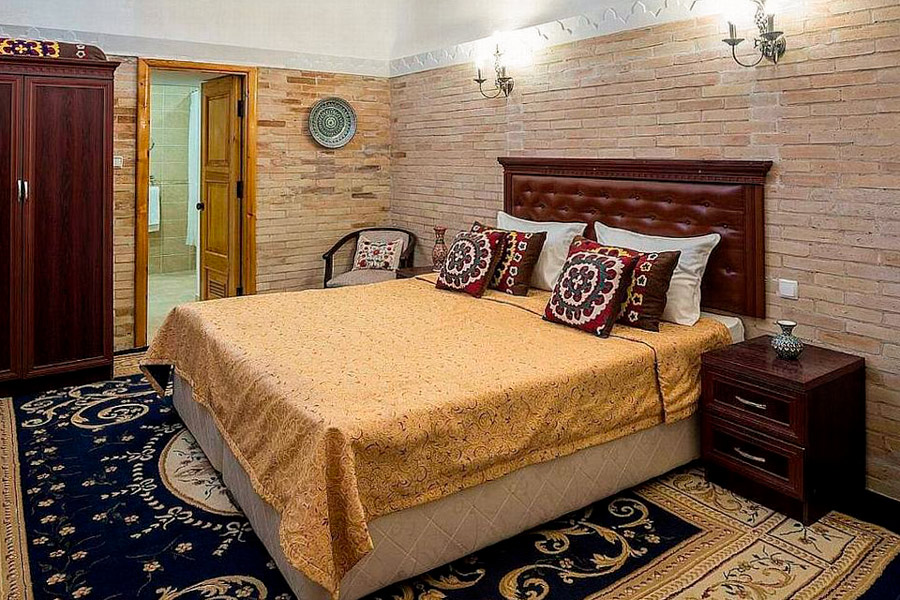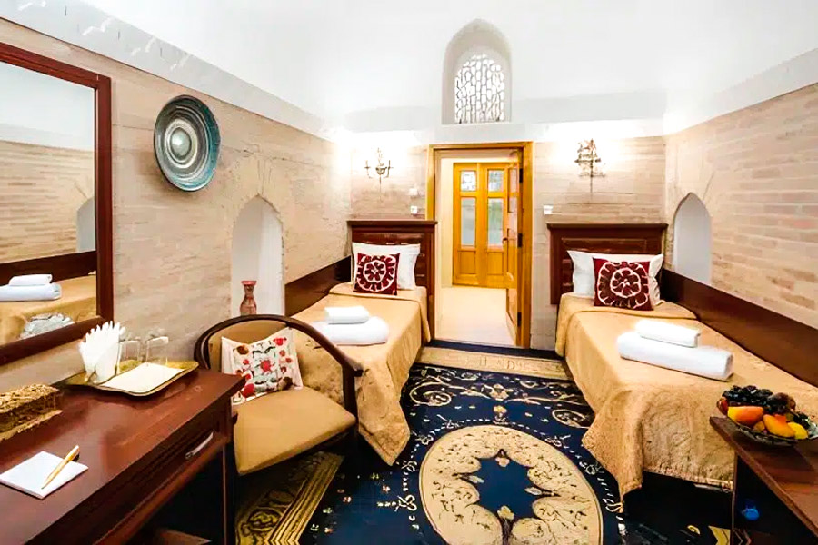 The hotel is also unique with its khujras (cells) of rooms, where guests live, and its location. Directly from the hotel you can set off on a walking tour along the narrow streets of the old fortress, glancing at the workshops and feel as if you have found yourself in a small part of the ancient city several ages ago.
