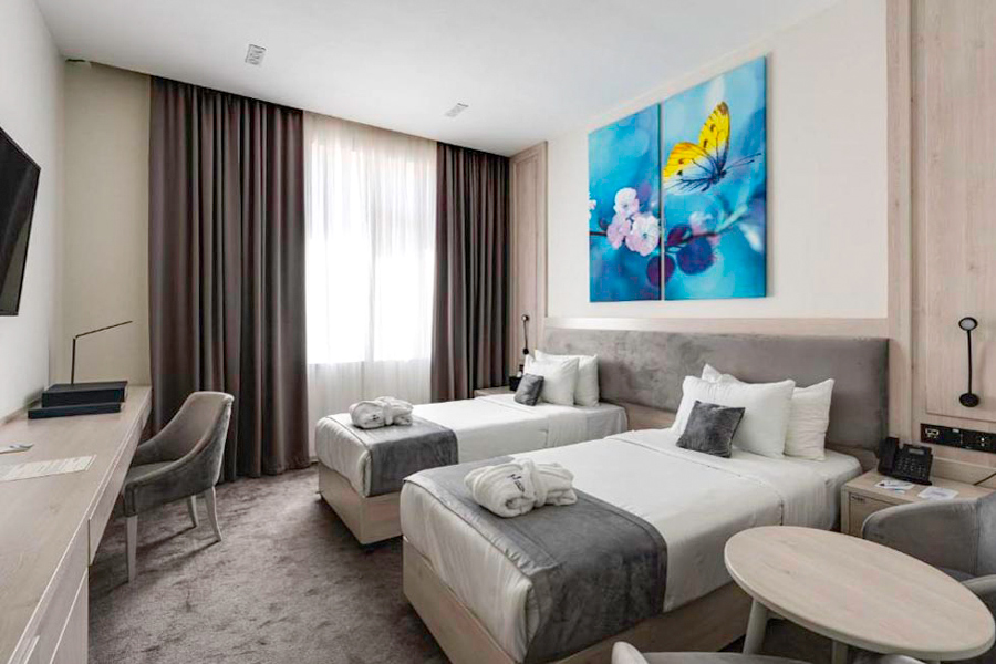 Inspira-S Hotel has 140 rooms divided into three categories: standard rooms, junior suites, and suites. The rooms are spacious and bright, decorated in a classic style and equipped with everything needed for a comfortable stay. The bathrooms are also quite spacious and include both bathtubs and shower stalls. The hotel features a large restaurant for breakfast, a swimming pool, a gym, a sauna, and facilities for business guests visiting the capital. The hospitable staff at Inspira-S Hotel take great care of guests’ comfort and convenience, and many employees speak not only Russian and English, but also Japanese.