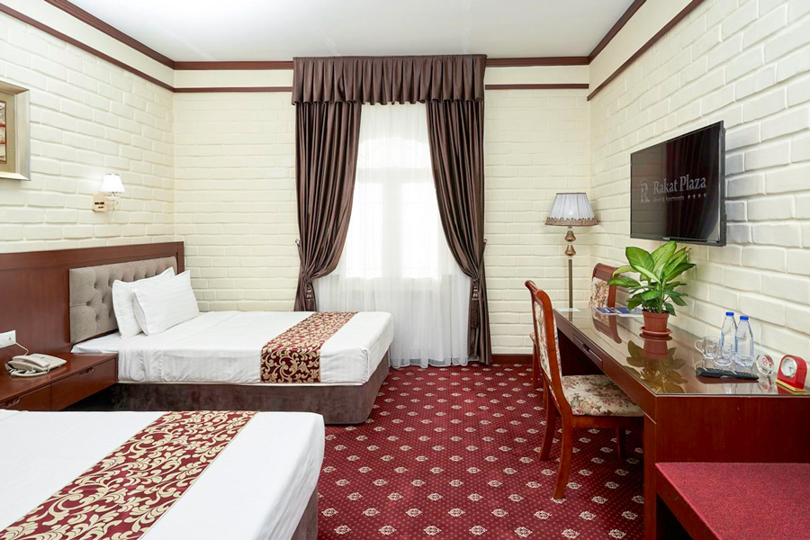 Rakat Plaza is a small and comfortable hotel located in the southwestern part of Tashkent, just 4 km from the city center. The hotel is 4.5 km from the airport, and many of the capital’s popular attractions can be reached by car within 15–20 minutes. There are also several good restaurants and pubs near the hotel.